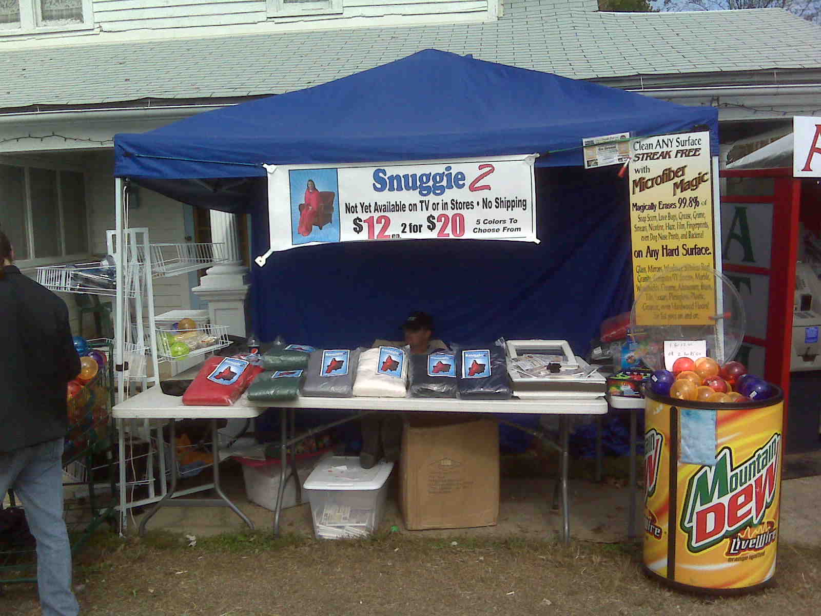 I have a feeling that’s what is going on here. A shady-looking gentlemen is sitting behind a stand selling the Snuggie 2. I didn’t get any closer than I needed for a decent picture, as I was afraid the guy would talk me into buying six or seven of these, but I’m pretty sure it is the exact same thing as everyone’s favorite backwards bath robe, maybe with a few alterations made. Sorry about the quality, I didn’t take my camera so I had to use my BlackBerry.