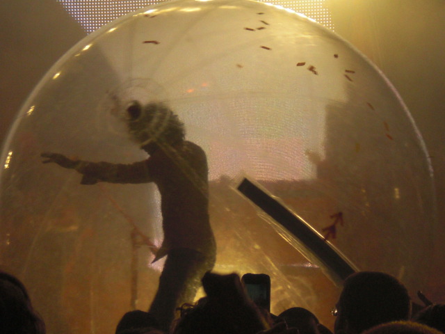 CIMG0852 Published May 6, 2010 at 640 × 480 in [Concert Review] The Flaming Lips at the IU Auditorium Wayne Coyne in his sphere